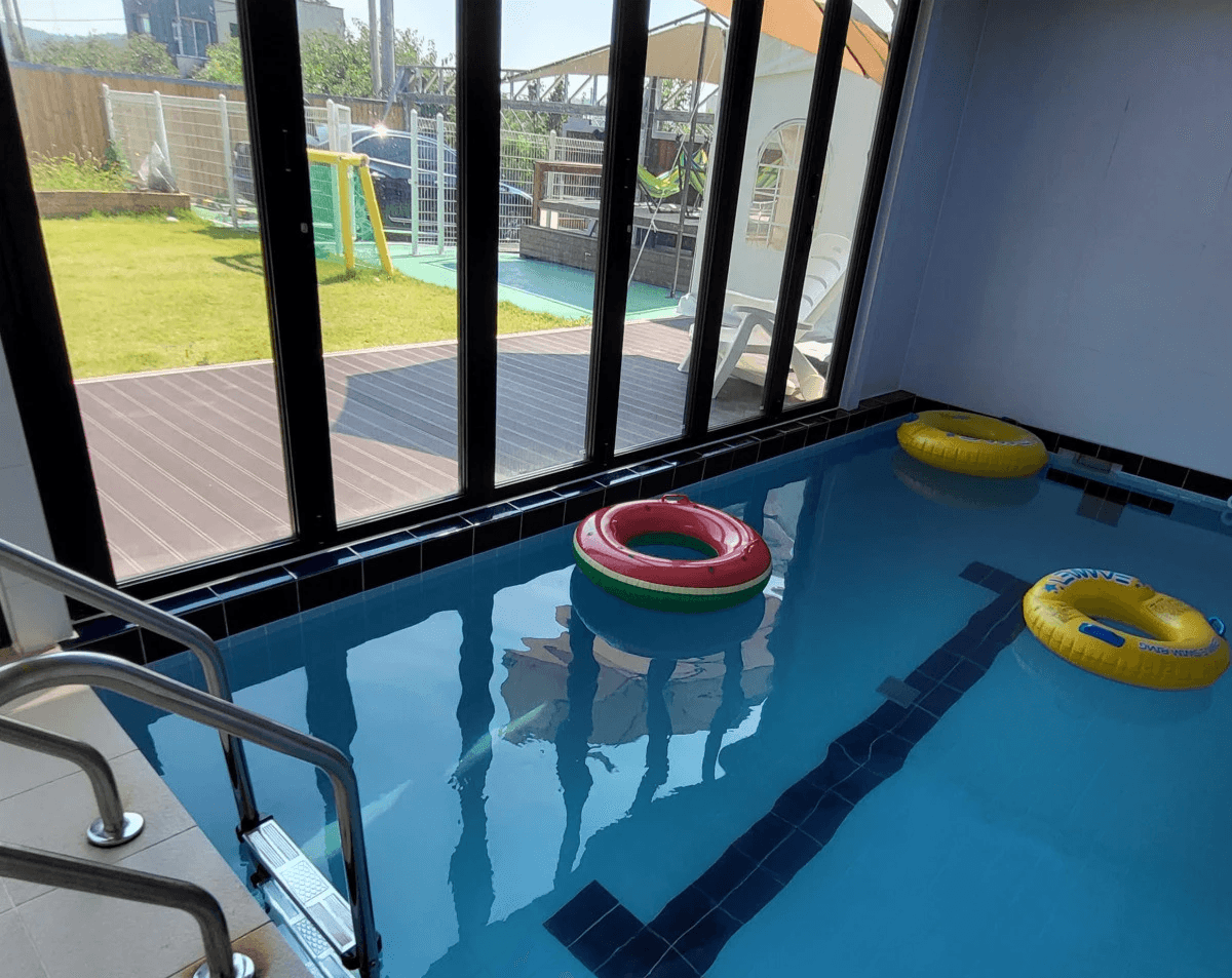 15평 야외풀빌라. 내부 사계절 미온수 풀장
