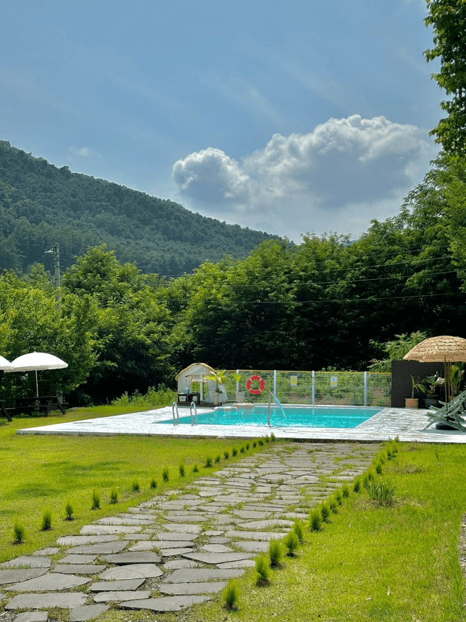 이국적인 수영장과 초록빛 자연경관